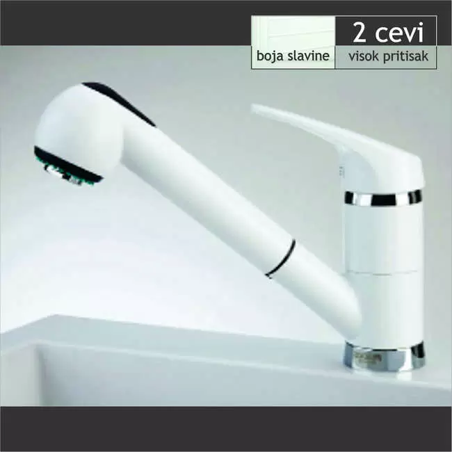 Jednoručna baterija-slavina za sudoperu ST2577WH DiplonJednoručna stojeća slavinaVertikalna instalacija na jedan otvorFleksibilna gibljiva cevSa dva c ...