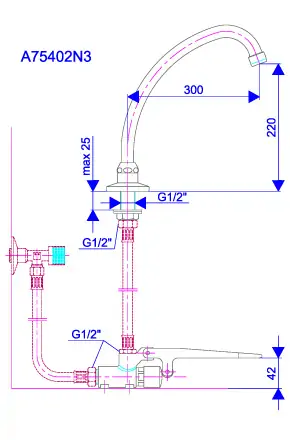 Slavina sa nožnom pedalom za hladnu vodu pokretna 300mm A75402N3 Rosan