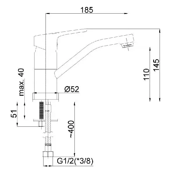 • Slavina se isporučuje sa 40 cm dugim crevima.