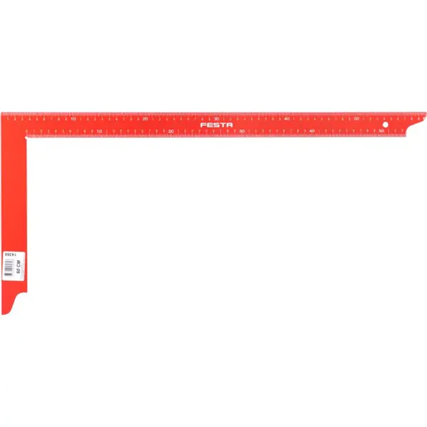 • Stolarski ugaonik FESTA dimenzija 600 x 300 mm namenjen je preciznom obeležavanju i kontroli pravih uglova u stolarskim, tesarskim i građevinskim radovima. Izrađen je iz jednog komada kaljenog opružnog čelika, što obezbeđuje visoku čvrstoću, dugotrajnu stabilnost i otpornost na deformacije tokom intenzivne upotrebe.