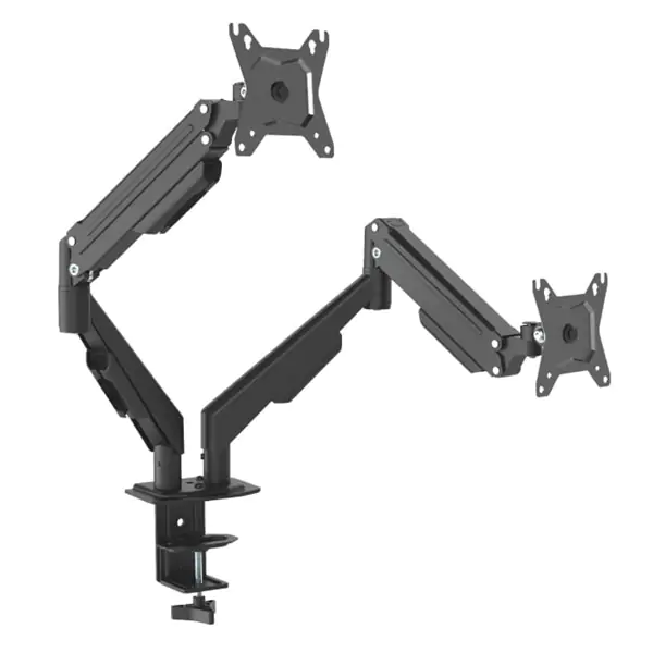• PROSTO stoni nosač za dva monitora dizajniran je za profesionalce koji žele maksimalnu ergonomiju, uštedu prostora i savršen pregled tokom rada. Ovaj zglobni nosač omogućava postavljanje dva monitora veličine od 17" do 32", sa maksimalnom nosivošću po kraku do 8 kg. Svaki nosač opremljen je mehaničkom oprugom koja omogućava precizno i stabilno podešavanje visine bez potrebe za dodatnim alatima.