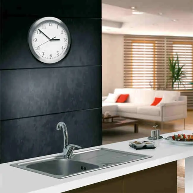• U slucaju zidne montaze, ostavite minimum 25mm rastojanja od zida. Ovo rastojanje je narocito potrebno kod kamenih i mermernih ploca. U tom slucaju, 60mm prostora ce biti izdvojeno izmedju bazena sudopere i zida ostavljajuci rupu na sredini nize police u kuhinji. Izbegavaj te upotrebu automatskog pistolja za povezivanje metalnih delova i zatezivanja delova za odvod, jer time mozete napraviti stalna ostecenja na vasem proizvodu.