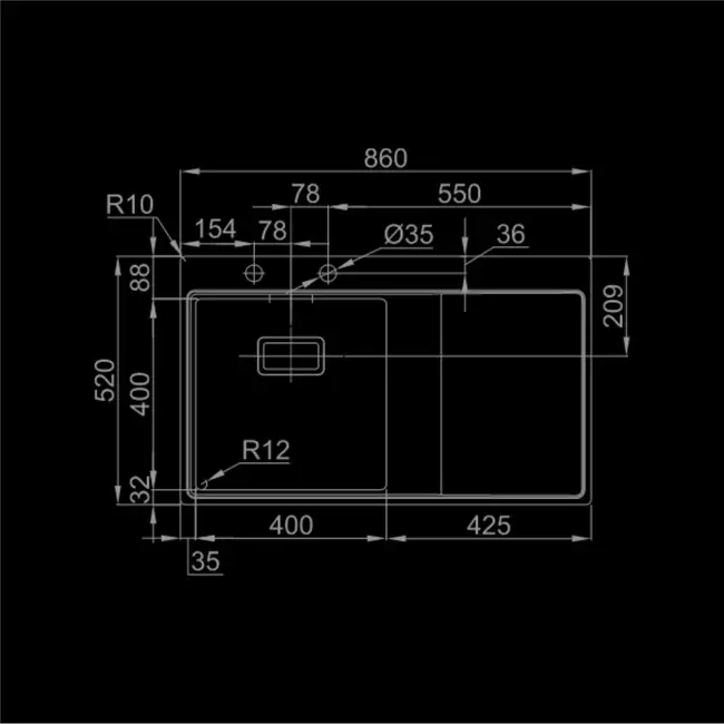 • Spoljna mera: 860x520mm