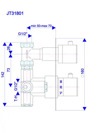 • Naziv proizvoda: Thermo2 - Uzidna baterija za tuš kadu sa jednim izlazom JT31801 ROSAN