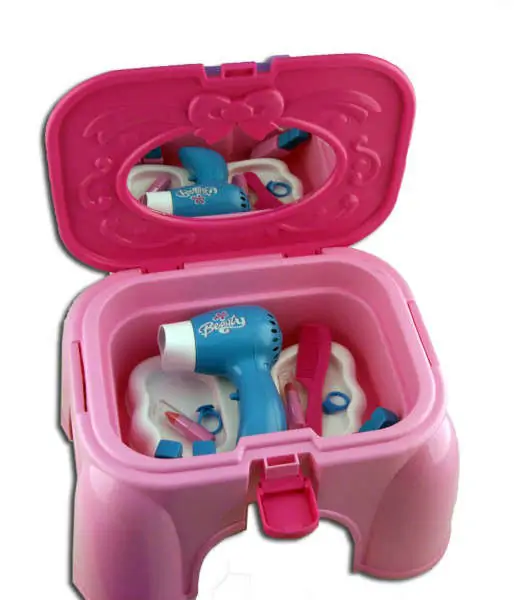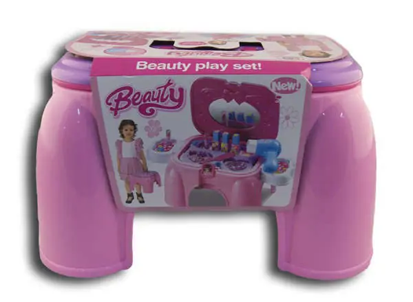 • Toaletni stočić za devojčice spakovan u kutiju koja može da posluži i kao stolica!