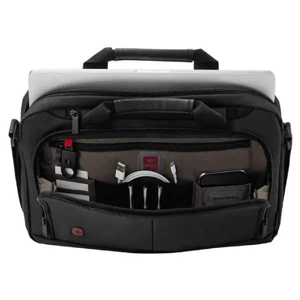 • Wenger Source torba za laptop model 601064 u crnoj boji predstavlja elegantno i praktično rešenje za svakodnevno nošenje laptopa i tableta, idealna za poslovne ljude, studente i sve koji cene organizaciju i zaštitu svojih uređaja. Namenjena je za laptopove sa ekranom do 14 inča i tablete do 10 inča, a poseduje dve odvojene pregrade koje omogućavaju pregledno odlaganje. Glavna pregrada obložena je mekanim materijalom koji pruža sigurno smeštanje laptopa, uz dodatni džep na zip za sitnije predmete. Na prednjoj strani nalazi se dodatni džep na zip sa više manjih pregrada, savršen za odlaganje mobilnog telefona, olovaka, dokumentacije i drugih stvari koje treba da budu pri ruci. Sa dimenzijama 39 x 25 x 8 cm, zapreminom od 5 litara i težinom od svega 0,7 kg, ova torba je lagana, kompaktna i laka za nošenje, a istovremeno nudi dovoljno prostora za sve neophodne stvari.