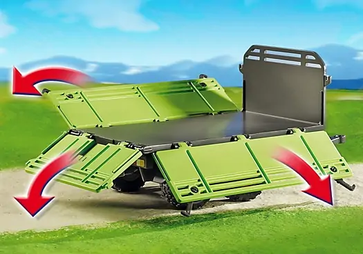 • Set veliki traktor sa prikolicom uključuje dva prednja zamenjava dodatka, prikolicu koja se može otkačiti kao i figuru poljoprivrednik.