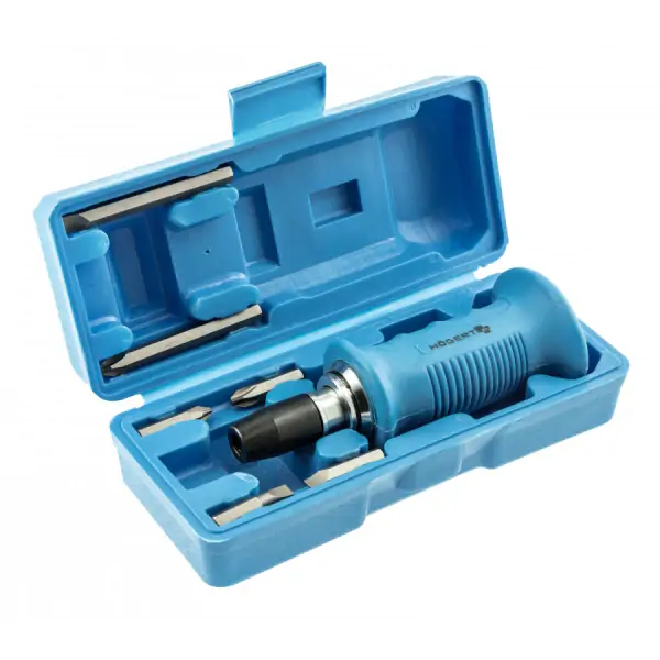 Udarna šrafcigerka u kompletu sa zamenljivim nastavcima olakšava odvrćanje zapečenih šrafova povećanjem snage rada udarcem, na pr ...