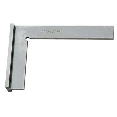 Ugaonik bravarski sa naslonom 1260A 125mm UNIOR,materijal: konstrukcioni čelik.merne površine fino brušene.merna tačnost: 0, 01425° = 0, 25mm/m.naslon pričvršćen na kraći krak