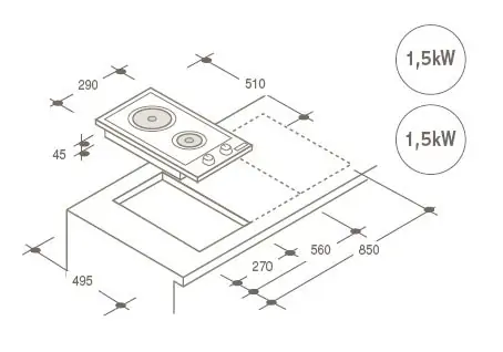 • snaga električnih ploča 2 x 1,5 kW