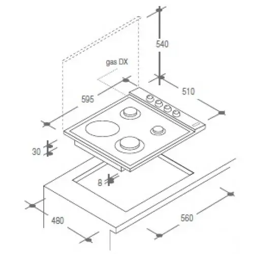 • Ploča ima 3 plinska gorionika i 1 električnu ringlu.