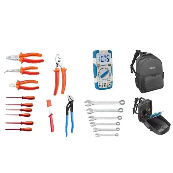 • Predstavljamo vam garnituru od 19 alata u rancu za alat i laptop Move od otpornog poliestera, profesionalni komplet namenjen električarima i svim majstorima koji rade sa visokim naponom. Samo izolovani VDE alati iz ovog kompleta sertifikovani su za rad pod naponom do 1000 V, pružajući maksimalnu bezbednost pri izvođenju radova na električnim instalacijama. Set uključuje VDE izolovana klešta – kombinovana, špicasta savijena, sečice kose, klešta za odsecanje kabla, električarski izolovani nož, šest VDE odvijača krstastog i pljosnatog tipa, šest kratkih viljuškasto-okastih ključeva i papagaj klešta. Svi alati su smešteni u izdržljivi ranac Move koji istovremeno može primiti i laptop, što ga čini idealnim za terenske radove i servisere koji često putuju. Ukupne težine 4,96 kilograma, ova garnitura je savršen spoj bezbednosti, kvaliteta i mobilnosti.