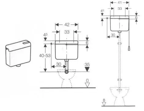 Start-stop štedna tipkaProizveden od ABS plastikePodesiva količina punjenja 6 - 9 lMogućnost priključka vode sa 3 stranaIzolacija protiv kondezacijeTiho i brzo punjenjeVisoko Montažni