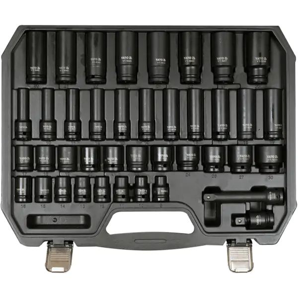 • Profesionalni set udarnih nasadnih ključeva YATO, sastavljen od 40 delova, predstavlja sveobuhvatno i robusno rešenje za zahtevne demontažne i montažne zadatke u svim vrstama servisa i radionica. Ovaj set se fokusira na 1/2" pogon, čineći ga kompatibilnim sa svim standardnim udarnim odvijačima i račnama, a kombinuje kratke i duge nastavke za maksimalnu fleksibilnost i pristup čak i u najskrovitijim radnim prostorima. Ključevi su izrađeni od visokokvalitetnog hrom-molibden (CrMo SCM-440) čelika, poznatog po izuzetnoj čvrstoći i otpornosti na zamor materijala, što ih čini idealnim za rad sa pneumatskim i električnim udarnim alatima pod najvećim opterećenjima. Inovativni AS-DRIVE sistem povećava kontaktnu površinu sa maticom, obezbeđujući efikasniji prenos snage uz smanjeno oštećenje ivica matice i veću bezbednost pri zatezanju. Set obuhvata potpunu lepezu metričkih i inčnih veličina, pokrivajući širok spektar potreba za odvrtanjem i zatezanjem. Svi ključevi su praktično organizovani u čvrst plastični kofer koji štiti alat, olakšava transport i održava red u radnoj okolini. YATO set od 40 udarnih ključeva je neophodan alat za svakog profesionalca u auto-mehanici, industriji ili teškom održavanju, gde su izdržljivost, pouzdanost i potpunost od kĺjučnog značaja.