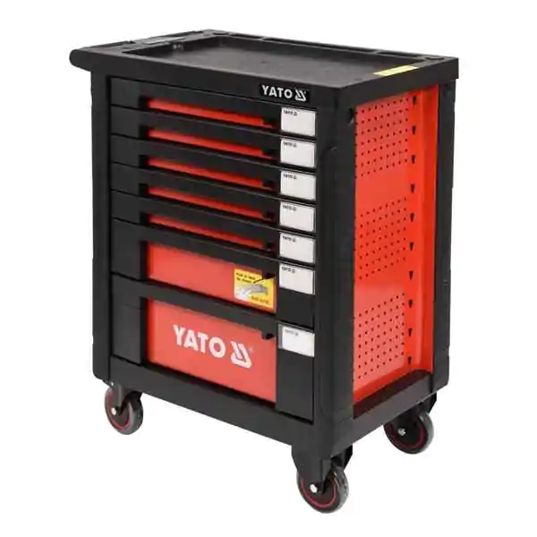 • Velika prednost ovog modela je protivklizna polipropilenska radna ploča sa maksimalnom nosivošću do 420 kg, pogodna za različite servisne i montažne poslove. Četiri masivna točka, od kojih je jedan sa kočnicom, omogućavaju lako pomeranje i stabilno pozicioniranje ormara. Dodatni ugaoni odbojnici i univerzalna perforacija bočnih stranica čine YT-55290 izuzetno funkcionalnim i prilagodljivim svakodnevnim radioničkim potrebama.