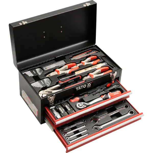 • Profesionalni set alata YATO od 80 delova predstavlja pažljivo odabranu i organizovanu kolekciju neophodnog ručnog alata, dizajniranu da zadovolji širok spektar zahteva u mehaničarskim radionicama, auto-servisima i za napredne korisnike u domaćinstvu. Osnovna prednost ovog seta je njegova praktičnost, počevši od robusne metalne kutije izrađene od pocinkovanog lima, koja sadrži tri organizovane fioke za jasno razvrstavanje i brz pristup alatu, čime se eliminiše haotično traganje i obezbeđuje zaštita investicije. Kvalitet je u prvom planu: svi nasadni ključevi, pogoni i kritični nastavci izrađeni su od visokokvalitetnih materijala – hrom-vanadijumskog čelika (CrV 6140, 50BV30) za izdržljivost i otpornost na habanje i tvrdog S2 čelika za maksimalnu pouzdanost pod opterećenjem. Set obuhvata 80 najčešće korišćenih elemenata, uključujući kompletan asortiman nasadnih ključeva u različitim veličinama i pogonima, preciznu račnu sa 72 zuba za rad u ograničenom prostoru, odvijače, kombinovane ključeve, klešta i druge pomoćne alate. YATO kutija sa alatom od 80 delova je idealan izbor za one koji traže ravnotežu između sveobuhvatnosti, vrhunskog kvaliteta i praktične organizacije, nudeći spremnost za efikasno rešavanje većine mehaničkih izazova.