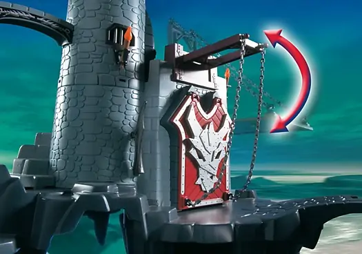 • Zamak se otvara sa podizućom ručkom, a vrata zamka vode u tamnicu u pećini. Balista oružjem brani zamak od napadača iz vazduha.