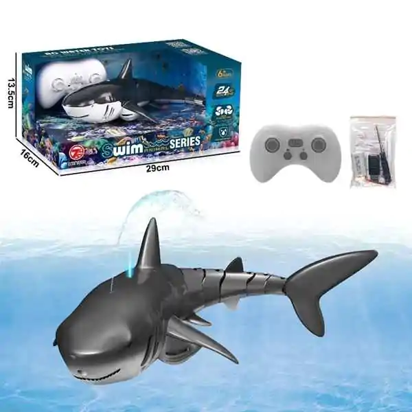 • Mališani mogu uživati u uzbudljivim avanturama na vodi sa ovom ajkulom na daljinsko upravljanje! Kada se spusti u vodu, ajkulom se upravlja pomoću daljinskog upravljača, a ona pliva kao prava predatorska riba.