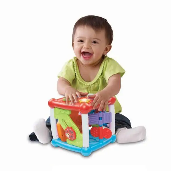 • Vtech igračka Aktiviti Kocka napravljena je od kvalitetne plastike sa pet različitih tipova igara koje se nalaze na stranicama kocke, dok su na šestoj strani dugmad različitih oblika sa životinjama i njihovim zvukovima.