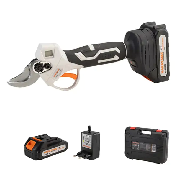 Aku makaze za orezivanje NAKAYAMA EC1300 su lagan i prenosiv alat sa 16,8V Li-Ion baterijom, idealan za profesionalno i kućno orezivanje grana. Opreml ...
