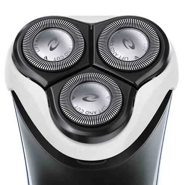 • Sistem sa dve oštrice ugrađen u naš električni aparat za brijanje podiže dlačice kako bi ih nežno podrezao ispod nivoa kože i tako osigurao glatko brijanje