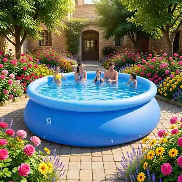 • Montaža bazena je izuzetno jednostavna i ne zahteva posebne alate, čineći ga idealnim "uradi sam" projektom koji možete postaviti za samo desetak minuta uz pomoć 2-3 osobe.