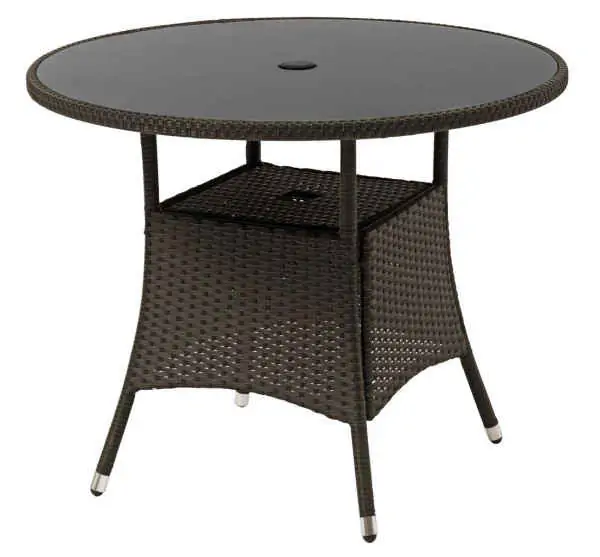 • Elegantna baštenska garnitura sa okruglim stolom i otvorom za suncobran na sredini stola