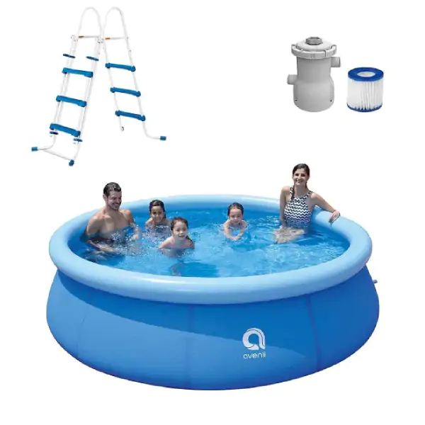 • Uživajte u bezbroj sati radosti i osveženja tokom toplih letnjih dana uz ovaj samostojeći bazen okruglog oblika, dizajniran za porodično uživanje i bezbrižnu zabavu na otvorenom. Sa impresivnom zapreminom od 6654 litara, pruža dovoljno prostora za sve članove porodice, bilo da je u pitanju osveženje, igra ili opuštanje u vodi. Dodatnu prednost čini filter pumpa koja obezbeđuje čistu i bistru vodu tokom cele sezone, uz minimalan napor za održavanje. Zahvaljujući jednostavnom sistemu postavljanja pomoću prstena na naduvavanje, bazen je brzo i lako spreman za upotrebu. U kompletu se isporučuje sa stepenicama koje omogućavaju lakši i sigurniji pristup, a ujedno olakšavaju čišćenje bazena.