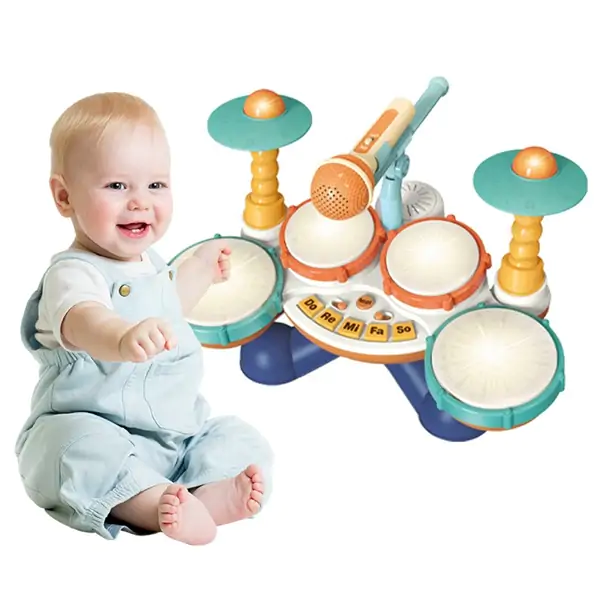 • Bebi bubnjevi sa mikrofonom savršena su igračka za najmlađe koji vole muziku i ritam. Ovaj šareni set u pastelnim bojama donosi beskrajnu zabavu i podstiče razvoj sluha, ritma i koordinacije pokreta.