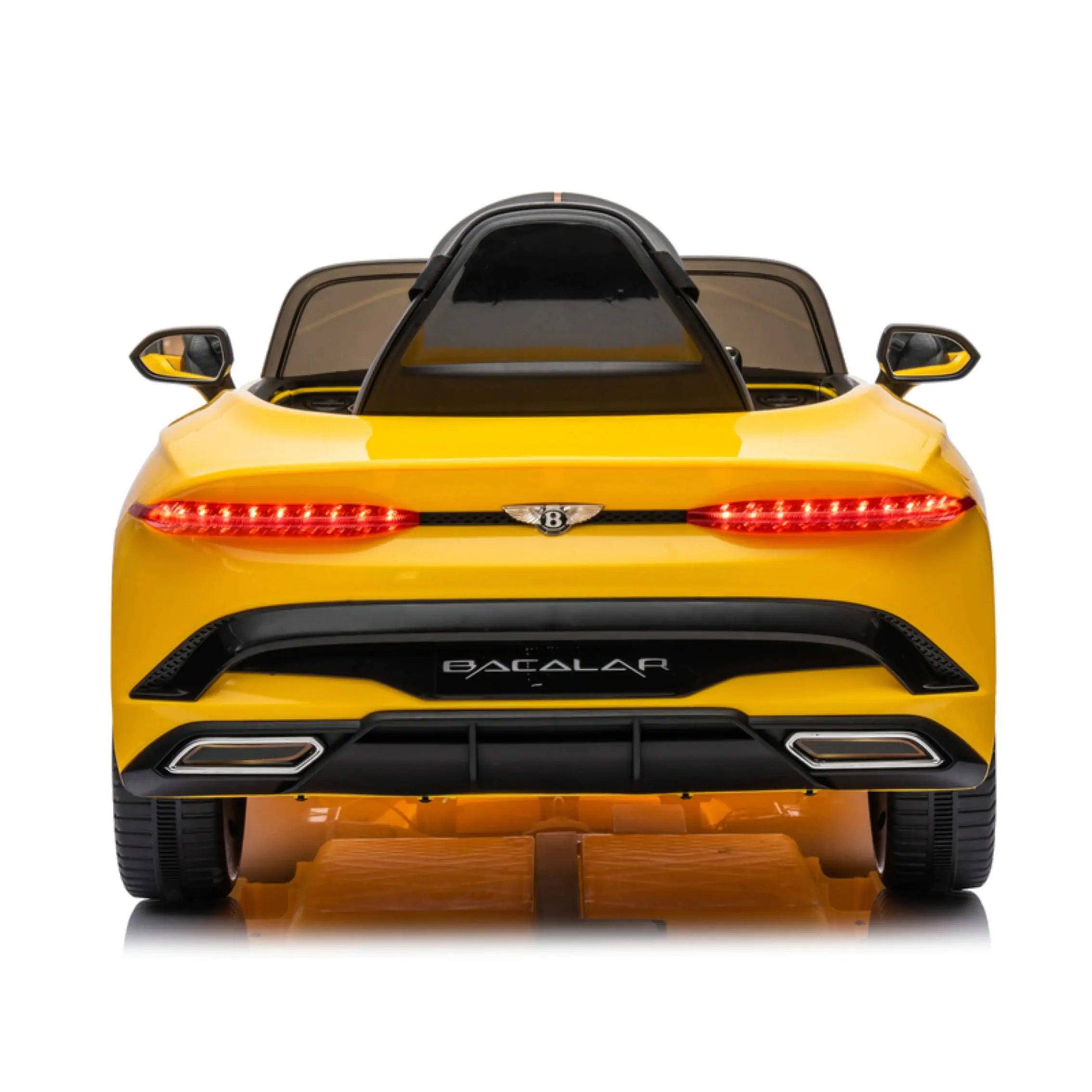 • Ovaj licencirani BENTLEY BACALAR u žutoj boji pruža jedinstveno i autentično iskustvo vožnje za vaše dete, kombinujući sigurnost, udobnost i zabavu u jednom elegantnom paketu. Vozilo je opremljeno kožnim sedištem koje pruža maksimalnu udobnost, EVA mekim gumama koje omogućavaju glatku i sigurnu vožnju, kao i amortizerima za dodatnu stabilnost i prijatno iskustvo vožnje. Prednja i zadnja LED svetla stvaraju realističan izgled, dok otvarajuća vrata sa sigurnosnom bravom omogućavaju jednostavan i bezbedan ulazak i izlazak. Integrisani ulazi za MP3 i USB omogućavaju slušanje omiljene muzike direktno sa mobilnog telefona ili tableta, dok snažan 12V7A akumulator i dva motora pružaju dugotrajnu i pouzdanu vožnju. Sigurnosni pojas garantuje dodatnu zaštitu, a maksimalno opterećenje vozila je 30 kg, što omogućava bezbednu vožnju više mališana istovremeno. Dimenzije vozila su 108x63x48 cm, a težina 14,7 kg, dok se akumulator puni između 8 i 12 sati. Automobil poseduje realističan zvuk motora i dva načina upravljanja, omogućavajući detetu da samostalno vozi ili roditelju da preuzme kontrolu putem 2.4G daljinskog upravljača. Model je izrađen po EU standardima i poseduje sve neophodne sertifikate (AS, CE, EN71-1/-2/-3, EMC), pružajući sigurno i zabavno iskustvo vožnje za najmlađe.