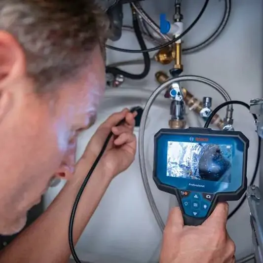 • Inspekciona kamera GIC 12V-4-23 C Professional je idealan alat za HVAC instalatere, vodoinstalatere, automehaničare i električare, poseduje veliki monitor od 4,3” sa prikazom visoke definicije od 800 x 480 piksela koji omogućava intuitivnu analizu cevi, kanala i teško dostupnih mesta, funkcija pokazatelja nagore olakšava određivanje orijentacije slike, ergonomski dizajn i robusna konstrukcija omogućavaju korišćenje na zahtevnim lokacijama, glava kamere ima IP67 zaštitu od prašine i kratkotrajnog potapanja u vodu, dok alat ima IP54 zaštitu od prašine i prskanja vode. Kamera je pogodna za pregled unutrašnjosti razvodnih kutija, cevi, šupljina u zidovima, hidrauličkih sistema i primene u automobilskom sektoru. Fotografije se lako prebacuju pomoću USB-C kabla, što omogućava jednostavnu dokumentaciju i analizu podataka.