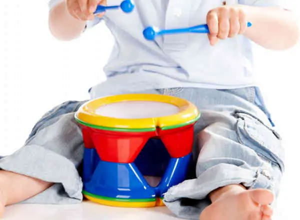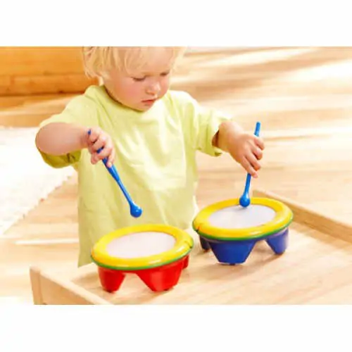 Bubnjevi bebi na baterije sa svetlom i zvukomZvuk se može emitovati neprestano pritiskom na dugme, ili periodično udarom u bubanj, zavisi od modula ko ...