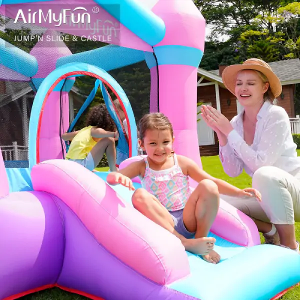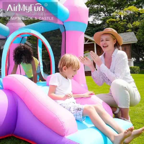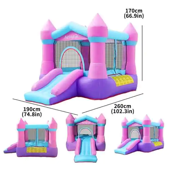 • Pretvorite svaki dan u nezaboravnu avanturu uz AirMyFun dvorac na naduvavanje – visokokvalitetni model koji kombinuje sigurnost, izdržljivost i prelep dizajn, pružajući deci savršen prostor za aktivnu igru, bilo u dvorištu ili unutar doma. Dimenzija 190 × 260 × 170 cm, igraonica je idealna za dvoje dece istovremeno, uz maksimalnu nosivost od 90 kg. Izrađena od najkvalitetnije Oxford tkanine (420D + 840D), garantuje otpornost na habanje i dugotrajan rad. Električna pumpa sa konstantnim protokom vazduha omogućava brzo naduvavanje i stabilnost tokom igre. U paketu se isporučuje sa kompletom za pričvršćivanje u zemlju, setom za popravku i torbom za nošenje – sve što je potrebno za jednostavno postavljanje, transport i dugotrajnu upotrebu. AirMyFun nije samo igračka, već investicija u zdrav razvoj deteta, podstičući fizičku aktivnost, koordinaciju i socijalizaciju u potpuno bezbednom okruženju.