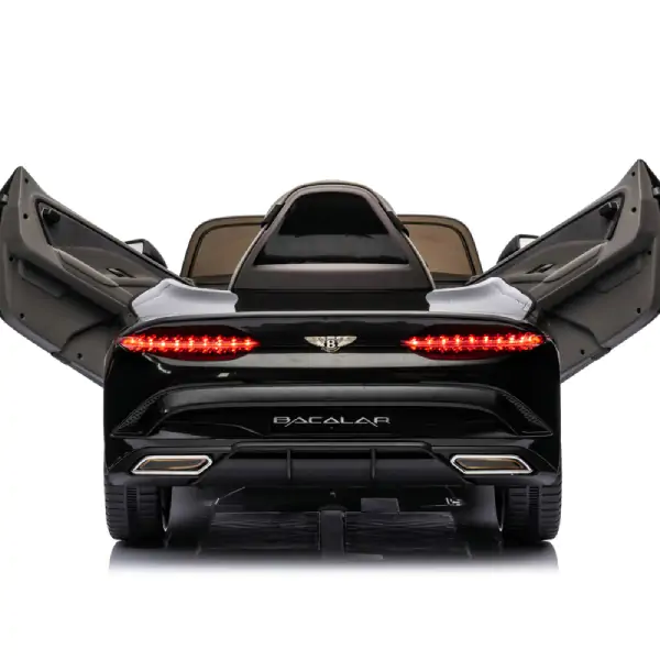 • Ovaj licencirani BENTLEY BACALAR u crnoj boji pruža vašem detetu autentično i sigurno iskustvo vožnje. Vozilo je opremljeno kožnim mekanim sedištem za maksimalnu udobnost i EVA gumama koje obezbeđuju glatku i sigurnu vožnju, dok amortizeri dodatno povećavaju stabilnost i kontrolu. Prednja i zadnja LED svetla doprinose realističnom izgledu, a otvarajuća vrata sa sigurnosnom bravom olakšavaju ulazak i izlazak.