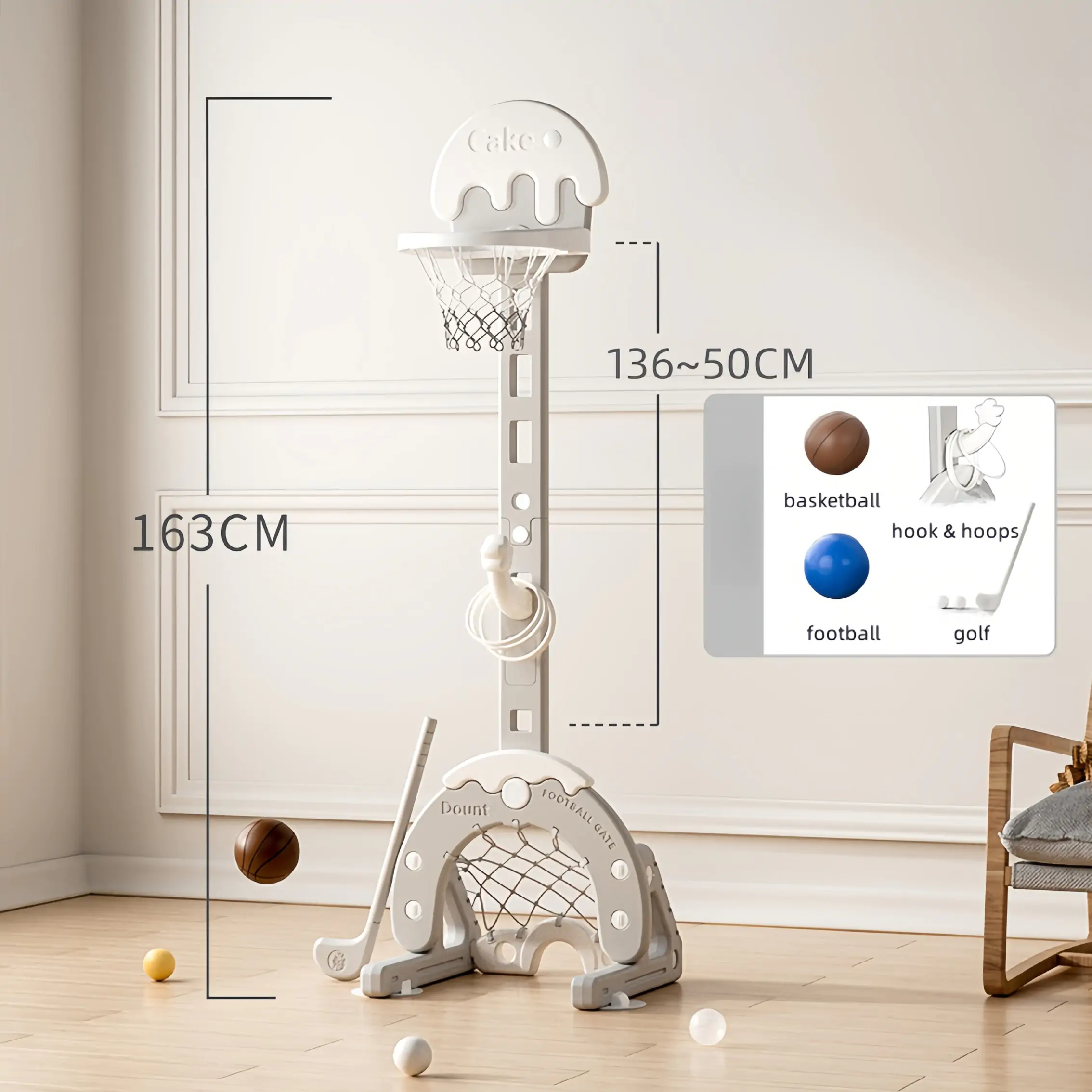 • Dečiji Multifunkcionalni Set za Igru 5 u 1 predstavlja savršen izbor za svako dete koje voli aktivnu, raznovrsnu i zabavnu igru, jer objedinjuje košarku, fudbal, golf i bacanje obruča u jedinstvenom, praktičnom kompletu koji podstiče motorički razvoj, koordinaciju i fizičku aktivnost. Podesivi koš, čija je visina obruča od 50 do 136 cm (ukupna visina 163 cm), omogućava igru prilagođenu različitim uzrastima, dok se gol lako postavlja i uklanja, pružajući idealnu vežbu preciznosti. Golf elementi nude mirniji vid igre, razvijajući finu motoriku i koncentraciju, a bacanje obruča donosi dodatnu zabavu i izazov. Set je izrađen od visokokvalitetnog, netoksičnog HDPE materijala koji se koristi u prehrambenoj industriji, obezbeđujući sigurnost, stabilnost i dugotrajnost, dok baza koja se po potrebi puni vodom ili peskom omogućava čvrstoću tokom igre. Pogodan je za korišćenje u kući, stanu, dvorištu ili na terasi, lako se skladišti, prenosi i prilagođava potrebama prostora. Kao poklon za rođendane, praznike ili svakodnevnu igru, ovaj set donosi deci zdravu zabavu, smeh, kreativnost i nezaboravne trenutke.