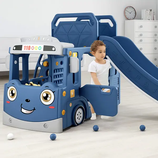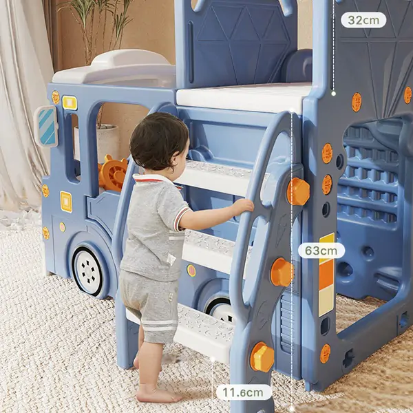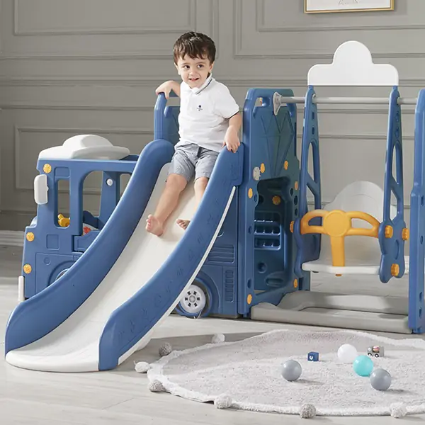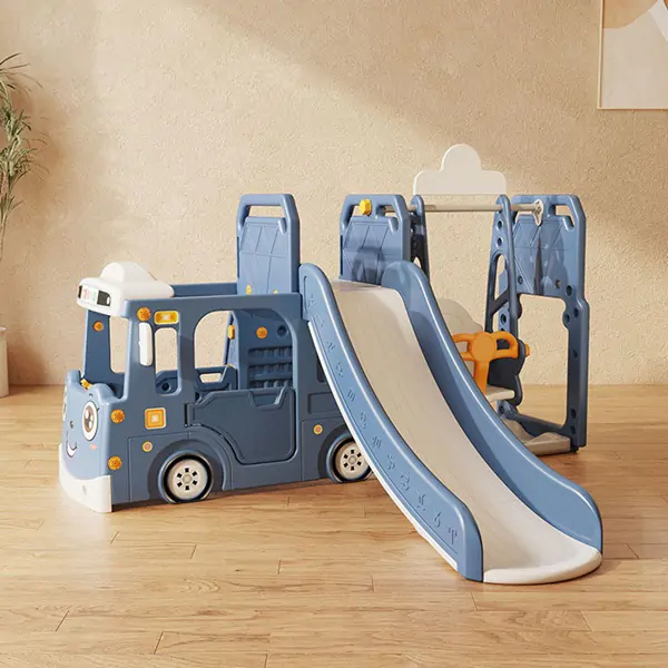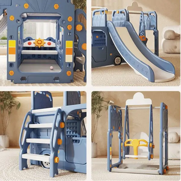 • Naziv proizvoda: Dečiji plavi vozić sa toboganom, ljuljaškom i ostavom za igračke