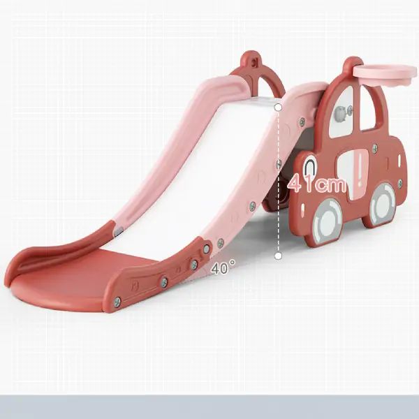 • Dečiji tobogan Auto sa Košem – Roze sa Crvenim Detaljima pruža savršenu kombinaciju zabave i aktivnosti, pretvarajući svaki dan u veselu avanturu za vaše dete. Dizajniran u obliku autića sa ugrađenim mini košem za loptu, ovaj tobogan omogućava kombinaciju spuštanja niz tobogan i igre sa loptom, podstičući razvoj koordinacije, ravnoteže i motoričkih veština. Sa visinom od 41 cm i nagibom od 40°, blago zakrivljenim završetkom i dodatnim “buffer” nagibom, obezbeđuje potpunu sigurnost i mekano prizemljenje mališanima, dok ukupna visina koša iznosi 64 cm, a cela dužina tobogana 157 cm.