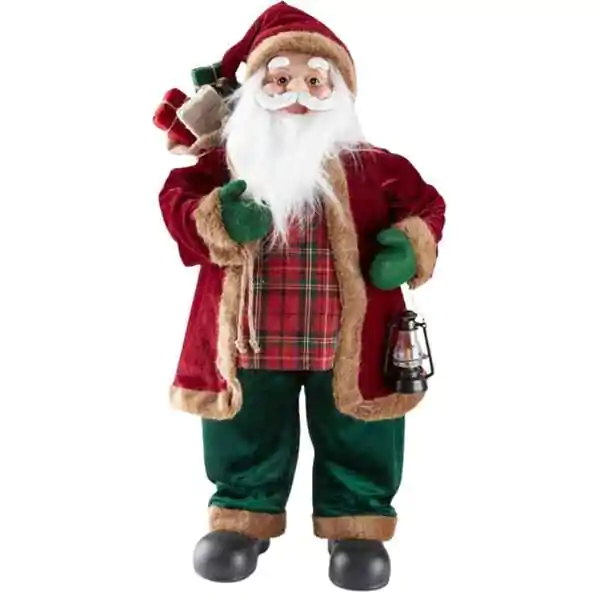 • U jednoj ruci nosi fenjer, dok na leđima ima torbu punu poklona, što je čini idealnim centralnim delom vaše praznične dekoracije.