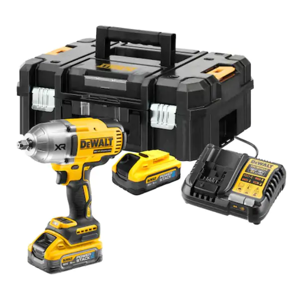 • Predstavljamo vam DEWALT® 18V XR 1/2 in. High Torque Impact Wrench – profesionalni udarni ključ koji sa lakoćom rešava i najzahtevnije zadatke. Zahvaljujući maksimalnom momentu pričvršćivanja od 1396 Nm i momentu odvajanja od 1898 Nm, ovaj alat je idealan za velike prirubnice na cevima, žljebljene spojnice, matice na točkovima, postavljanje anker vijaka u beton i mnoge druge teške industrijske primene. Ugrađeni PRECISION WRENCH™ režim sprečava prekomerno zatezanje pri radu unapred i odvrtanje unazad, pružajući vam potpunu kontrolu. Pomoću ažuriranog 4-režimskog membranskog prekidača možete lako menjati brzine i podešavati osvetljenost LED diode. Promenljivi okidač omogućava preciznu kontrolu u svim aplikacijama, dok svetla bela LED dioda odlično osvetljava radni predmet. Alat se isporučuje sa dve Powerstack 5Ah baterije (DCBP518), pakerom od 4A (DCB1104), kukom za kačenje i TSTAK kutijom za odlaganje.