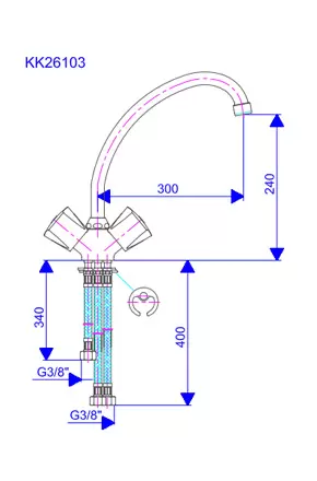 • Naziv proizvoda: Dvoručna slavina - baterija za protočni bojler - stojeća 3 cevi, duži izliv (300mm) Keramic KK26103 ROSAN