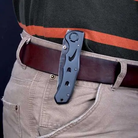 • Džepni nož od aluminijuma sa sečivom od nerđajućeg čelika dužine 80 mm, laka ali robustna konstrukcija sa alkom za kačenje na kaiš.