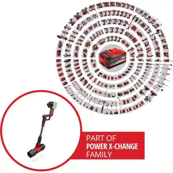 Akumulatorski duvač TE-CB 18/180 Li-Solo Power-X-Change EinhellČlan porodice Pover X-ChangeDvostepeno podešavanje brzine za svestranu upotrebuP ...