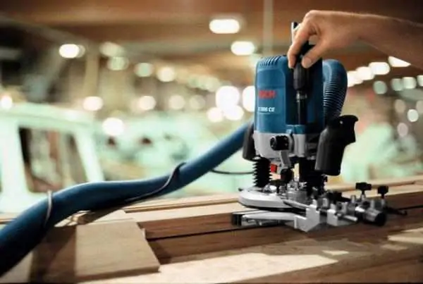 Glodalica za drvo POF 1200 AE BOSCHSnažni motor od 1.200 W za zahtevne zadatke u svim vrstama drvetaPriključak za usisivač – za rad bez pra&scar ...
