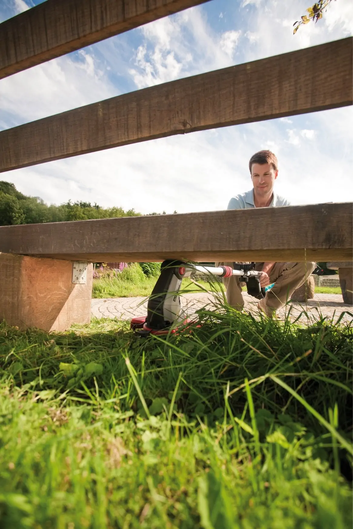 • Štitnik sa podešava pomoću zgloba tako da se može kositi i na teško pristupačnim mestima