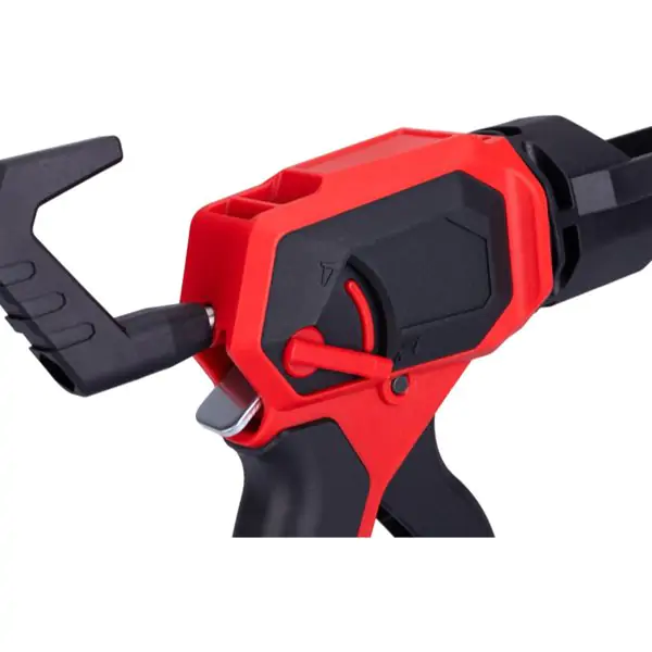 • Pištolj poseduje dve varijante ekstruzije, koje se biraju pomoću prekidača. U donjem položaju prekidača automatski se zaustavlja protok materijala, čime se sprečava neželjeno curenje nakon završetka nanošenja. U gornjem položaju omogućeno je kontinuirano istiskivanje, što je idealno za duže i ravnomerne linije zaptivanja.
