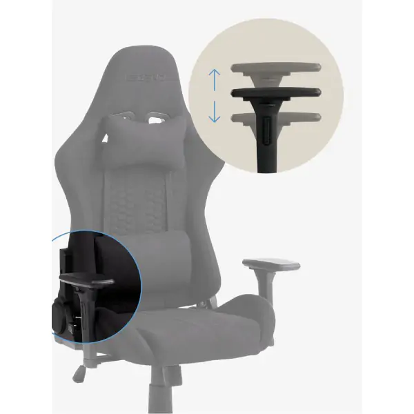 • Funkcije: 1D podesivi nasloni za ruke (gore/dole), podesivi naslon, klizni nagibni mehanizam sa zaključavanjem, podesiva visina, sigurnosni točkići, jastuci za vrat i lumbalni deo