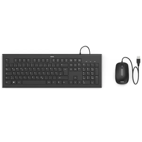 • Hama Cortino set žične tastature i miša u crnoj boji pruža praktično i funkcionalno rešenje za svakodnevno korišćenje računara. Tastatura punog formata ima 105 ravnih (flat) tastera sa QWERTZ slovnim rasporedom, omogućavajući precizno i udobno kucanje, dok miš poseduje tri tastera uključujući Scroll i osetljivost od 1000 dpi za pouzdanu kontrolu kursora. Oba uređaja se povezuju sa računarom putem USB-A portova i rade po principu plug-n-play, što eliminiše potrebu za dodatnim softverom i olakšava brzo korišćenje odmah nakon priključivanja. Set je kompatibilan sa operativnim sistemima Windows 11, 10, 8, 7 i Vista, čineći ga univerzalnim rešenjem za većinu PC računara. Dimenzije tastature su 44,9 x 2,2 x 15,1 cm sa masom od 510 g, dok miš ima dimenzije 6,3 x 3,2 x 9,9 cm i masu od 76 g, što doprinosi kompaktnosti i jednostavnom rukovanju. Hama Cortino set kombinuje jednostavnost, pouzdanost i udobnost za svakodnevni rad ili kućnu upotrebu.