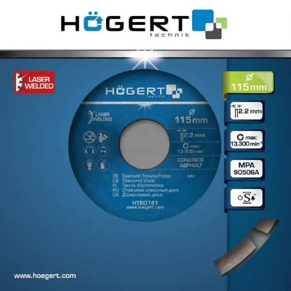 • Naziv proizvoda: Hogert HT6D741 rezni segmentirani dijamantski disk, 115 mm, laserski varen