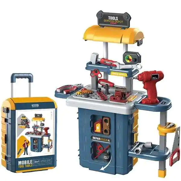 • Dečiji radni sto sa alatom 3-u-1 – kofer, sto i radna klupa sa električnom bušilicom