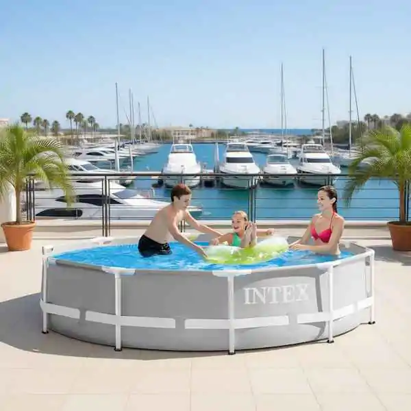 Bazen je super,samo je imao dve tackice gde je suzila voda to smo videli kad Smo napunili bazen,ovako je super